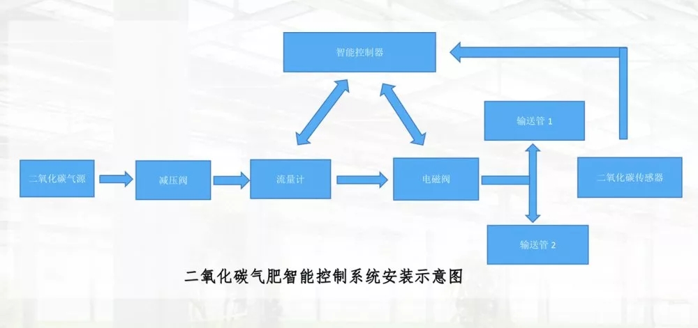 CO?是綠色植物光合作用的主要原料之一,在可見光的照射下,和水轉化為有機物。因此在光照、溫度適宜的條件下及時為溫室補充CO?,并使溫室CO?濃度保持在作物生長適宜范圍內,能有效加快作物生長,提高作物產量。