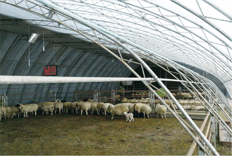新型膜結構畜禽棚舍,采用半透明頂棚和大跨度熱鍍鋅鋼結構,有利于自然光線進入舍內,降低白天照明能耗,同時,大跨度設計利于空氣流動和通風,能夠為禽畜提供一個明亮的生活環境。