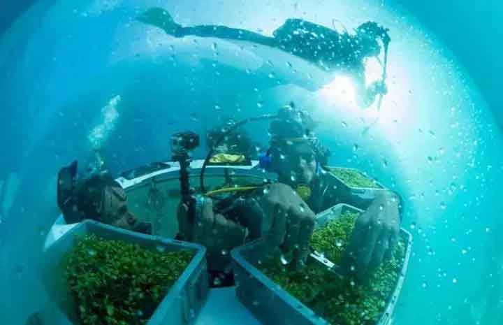 海地花園這個富有浪漫色彩的瘋狂想法,脫胎于一項頗受當地人喜愛的娛樂活動“水肺潛水(帶呼吸器潛水)”。它其實是個水下溫室,里面栽種的作物生長速度比在陸地上要快得多。它的成功給缺地、缺水地區的農業帶來了全新解決方案。