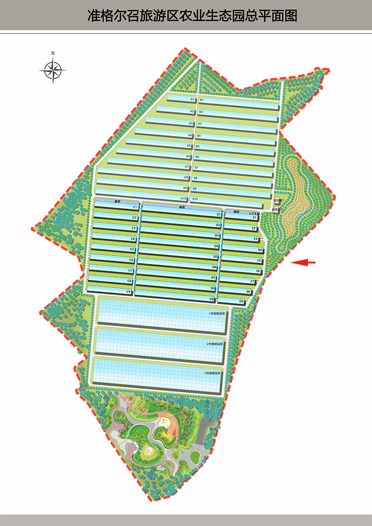 準格爾召旅游區農業生態園二期項目位于一期項目以南,主要建設國內技術領先的水蓄熱內保溫裝配式日光溫室27棟,總建筑面積約45000平方米(約67.5畝),預計2021年10月份建成并正式投入運營。